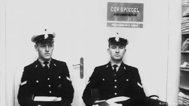 德国人很容易联想到50多年前的另一起事件。1962年10月,《明镜周刊》刊登了一篇题为“有条件的军备”(Bedingt abwehrbereit)的文章。文中引用了德国国防军的文件,检讨北约组织代号“Fallex 62”军演的结果。文章得出结论,“北约和联邦德国不可能经受得住苏联的进攻”,并直指当时的联邦国防部长施特劳斯须为此负责。施特劳斯随即下令搜查编辑部、逮捕总编和几名编辑,并以“叛国罪”进行调查和起诉。联邦总理阿登纳甚至也为调查辩护说:我们国家已成为叛国者的渊薮。