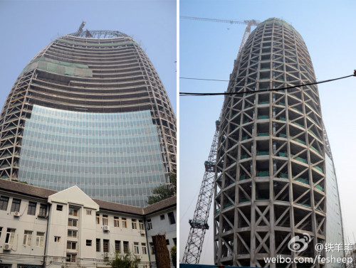 ![]() 有网友称:人民日报社新办公楼造型很特别,是一个球体变形后削去三个面,变成三面凹进的体量,混凝土框架与大型横梁结构的超高层,预计2014年完全竣。图为人民日报社新办公楼不同角度拼接图。图片来自@铁羊羊