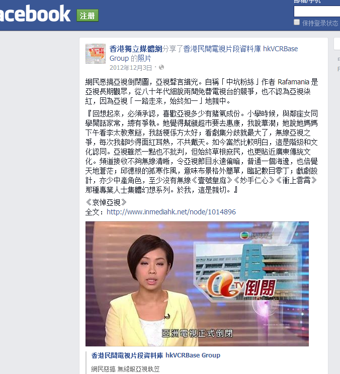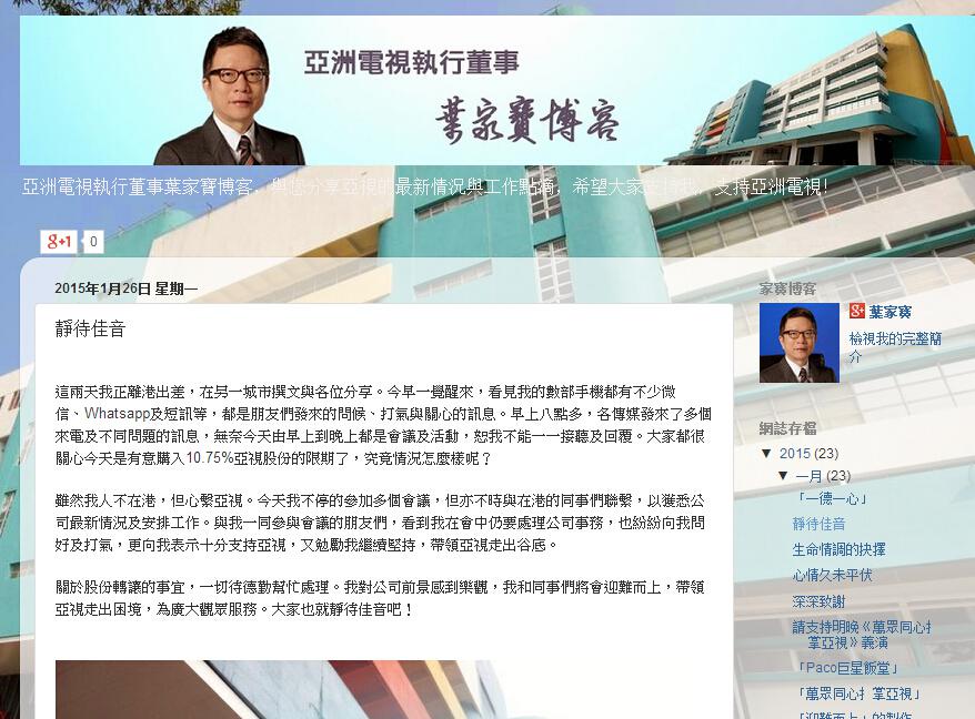 昨晚(26日)网上流传一张“亚洲电视宣布正式倒闭”的新闻图片,让使得“亚视倒闭”的消息疯传。在该图中,女主播下方配文指“亚洲电视宣布正式倒闭”,而下方的移动新闻快报中更有文字显示“维港两岸有近二十万市民以开香槟、食花生等方式,庆祝亚视倒闭”,如此表达方式令人心生疑惑。也有不少网友相信了,开始唏嘘怀念亚视,表示要“赶紧打开电视多看几眼亚视,不然以后没得看了”。 官方回应: 南方都市报记者今早(27日)紧急联系了亚视公关部负责人Jeff,Jeff对此回应称:“亚视仍然正常营运,今早紧守岗位的员工们照常上班,一切运作如常。”对于网上流传的截图,对方表示,相信是有人伪做,无线不可能播出这样的新闻片,文字带恶搞性质,亚视不屑作出回应,也请网友稍安勿躁,别急着怀念亚视。 而针对网传的亚视执行董事叶家宝“失踪”问题,Jeff表示,叶家宝正离港出差,但其已于26日傍晚6时写下《静候佳音》的博客,表达他对亚视的前景感到乐观,他写道: 这两天我正离港出差,在另一城市撰文与各位分享。 …… 大家都很关心今天是有意购入10.75%亚视股份的期限了,究竟情况怎样呢? 关于股份转让的事宜,一切待德勤(德勤会计师事务所,帮亚视公开招标)帮忙处理。我对公司前景感到乐观,我和同事们将会迎难而上,带领亚视走出困境 ,为广大观众服务。大家也就静待佳音吧! 今日,叶家宝又更新博客替自己“澄清谣言”,他写道: 同事这两天跟我报告,说很多传媒行家对于两天天我的行踪有很多揣测,这也难怪,在经理人公司截止投票前,我竟「失踪」了! 其实我是去了广西南宁,作为特邀嘉宾出席广西自治区政协会议,也与香港一些大企业的老板,包括位元堂的邓清河先生、华南城的郑松业先生、广西名产「金嗓子」的代理吴慧女士、香港中小型企业总商会会长吴家荣先生及年轻一辈的蔡加讚、何猷啟及谭镇国等等介绍了亚视的状况。他们大部分都不约而同說会支持亚视,并会立刻投放广告,或拍特辑、做活动,以不同的形式來支持亚视。 相关背景: 1.关于亚视 亚洲电视(英语:Asia Television Limited,官方英文简称ATV)成立于1957年5月29日,至今已服务香港观众超过半世纪,不仅是香港第一家电视台,而且更为全球第一家中文电视台。公司初期以收费电视形式经营,取名为「丽的映声Rediffusion (HK) Ltd」,1973年开始,改为「丽的电视Rediffusion Television Ltd」,并且提供免费广播服务予全港观众。1982年,正式改名为「亚洲电视 Asia Television Ltd」。现时亚视覆盖香港、澳门、广东及北美近一亿观众。香港人一般简称为“亚视”、“亚记”、“aTV”。亚视以深入、明快的新闻报道在香港地区闻名,也曾经制作大批经典的电视剧,脍炙人口。《大侠霍元甲》、《四大名捕》、《银狐》、《碧血青天杨家将》、《我和春天有个约会》、《情陷夜中环》等都是大家耳熟能详的作品。 亚视是香港第一家电视台,亦是全球第一间华语电视台,全球首家华语(粤语)电视台。此外,亚视还开创了数个第一:香港电视史上第一次大型筹款义演;全港第一个电视艺员训练班;建立香港历史最悠久的电视大楼;第一批将《大侠霍元甲》和《陈真》等电视剧输入内地;第一个开播晨间新闻的电视台;第一时间直播9-11恐怖袭击…… 2.亚视倒闭早有传闻 早在2012年,网上就有言论称“亚视破产”。 2011年10月12日,亚洲电视台湾股东蔡衍明,透过属下公司首度入禀高等法院,申请将亚视清盘。 近年来,亚视财政风波不断,现已演变成拖欠员工工资的窘境。 2014年12月,亚视陷入欠薪风波,被指拖欠员工11月份薪金,叶家宝召开了一个紧急董事会商讨此问题。 对于有员工可能会发起罢工,叶家宝表示:“我相信到目前为止员工都是克制的,再一次向员工致歉,他们没收到薪金仍然好专业谨守岗位,我亦再次员工们继续紧守岗位,始终广播要合《通讯条例》。······亚视每个月的收入是维持不了发薪的,是靠注资才可以发薪,希望员工有一个开心的2015年。” 若亚视继续无法拿到新的注资来发放员工薪资,按香港法律,其员工可申请亚视破产。 亚视公关对此表示,“公司多谢各位同事一直紧守岗位,亚视仍在努力争取为员工发出2014年12月份的薪金。” |