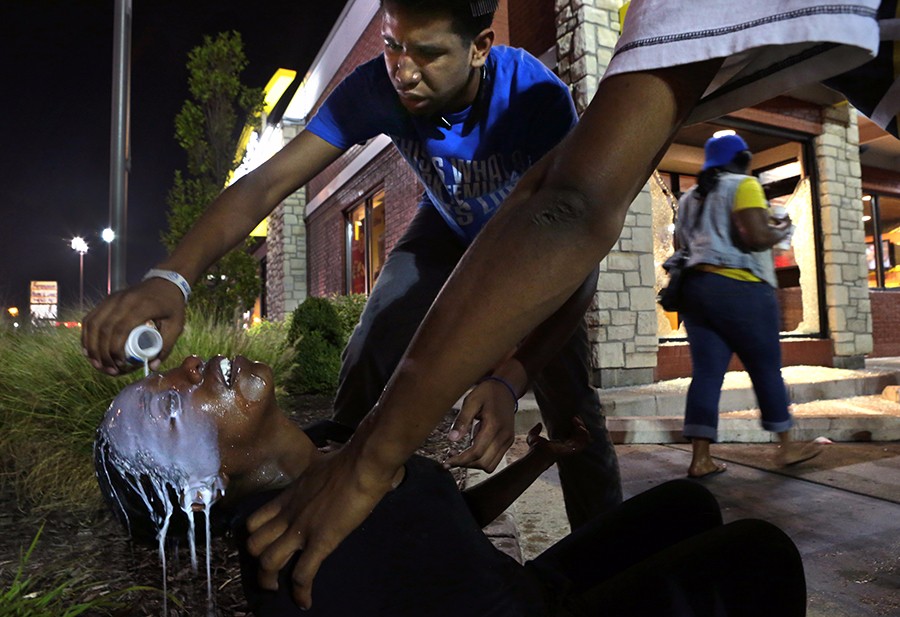 图为由《圣路易斯邮报》摄影记者们拍摄的《弗格森事件》,该作品获得突发新闻摄影奖。