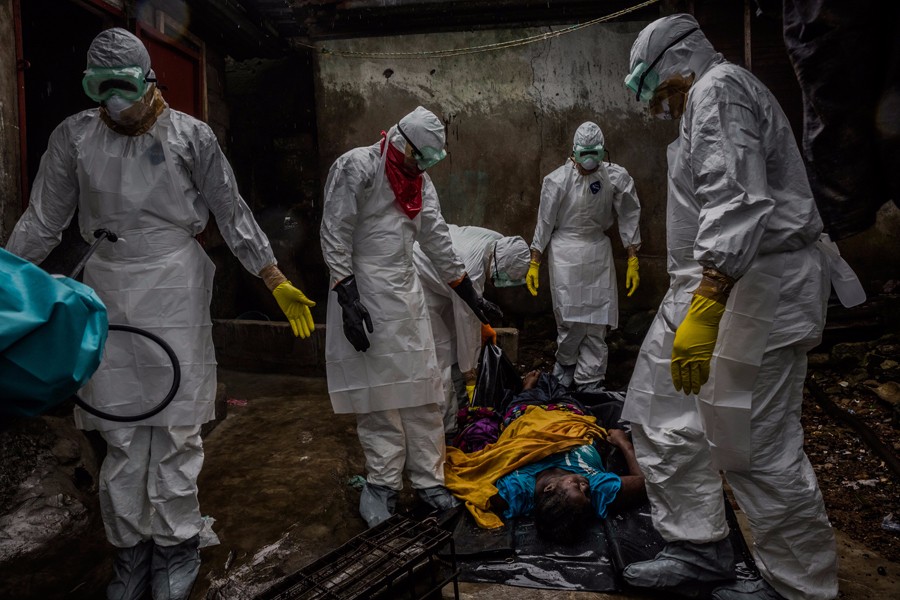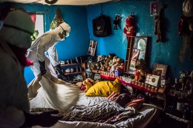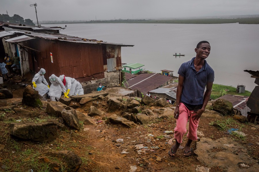 自2014年2月开始,西非爆发大规模埃博拉病毒疫情,截至2014年12月17日,埃博拉出血热疫情肆虐的利比里亚、塞拉利昂和几内亚等西非三国的感染病例达19031人,死亡人数达到7373人。 摄影:Daniel Berehulak
