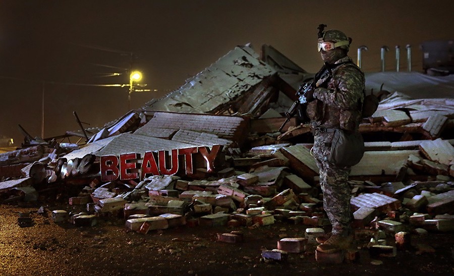 2014年8月9日,美国密苏里州的弗格森18岁黑人学生迈克尔·布朗被警察击毙。布朗被枪杀在当地引发抗议活动,并演变成骚乱。图为由《圣路易斯邮报》摄影记者们拍摄的《弗格森事件》,该作品获得突发新闻摄影奖。