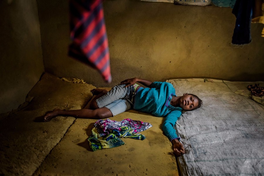 2014年11月21日,塞拉利昂弗里敦,16岁的Isatu Sesay已经神志不清,3个小时后死去。过去3天来,他数十次呼叫救护车失败。 摄影:Daniel Berehulak